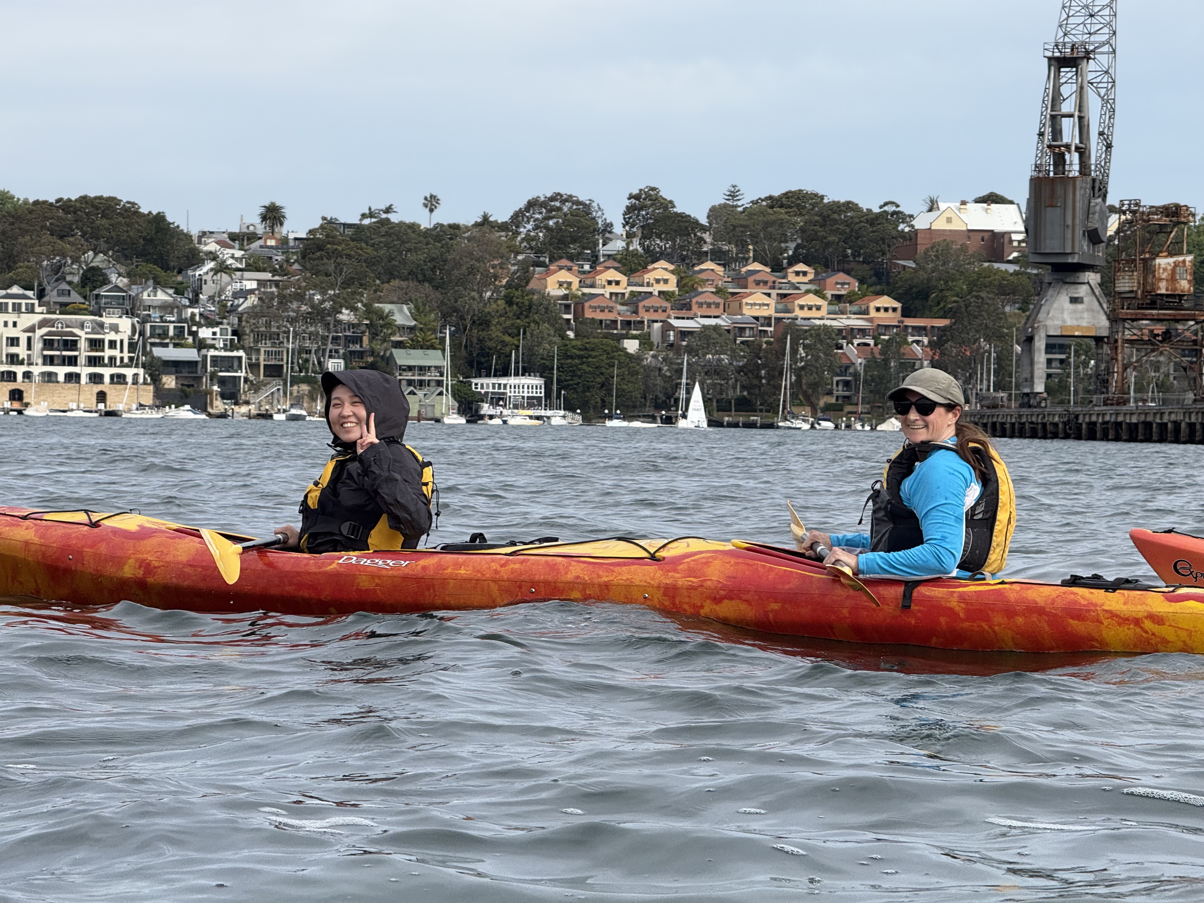 Out on the kayaks in Sydney Harbour; we’ll run a Friday evening social paddle ‘round Goat Island most weeks, Sunrise Blast on a Thursday Morning in the skis, and a Salty Saturday out to somewhere interesting across the harbour once a month or thereabouts.